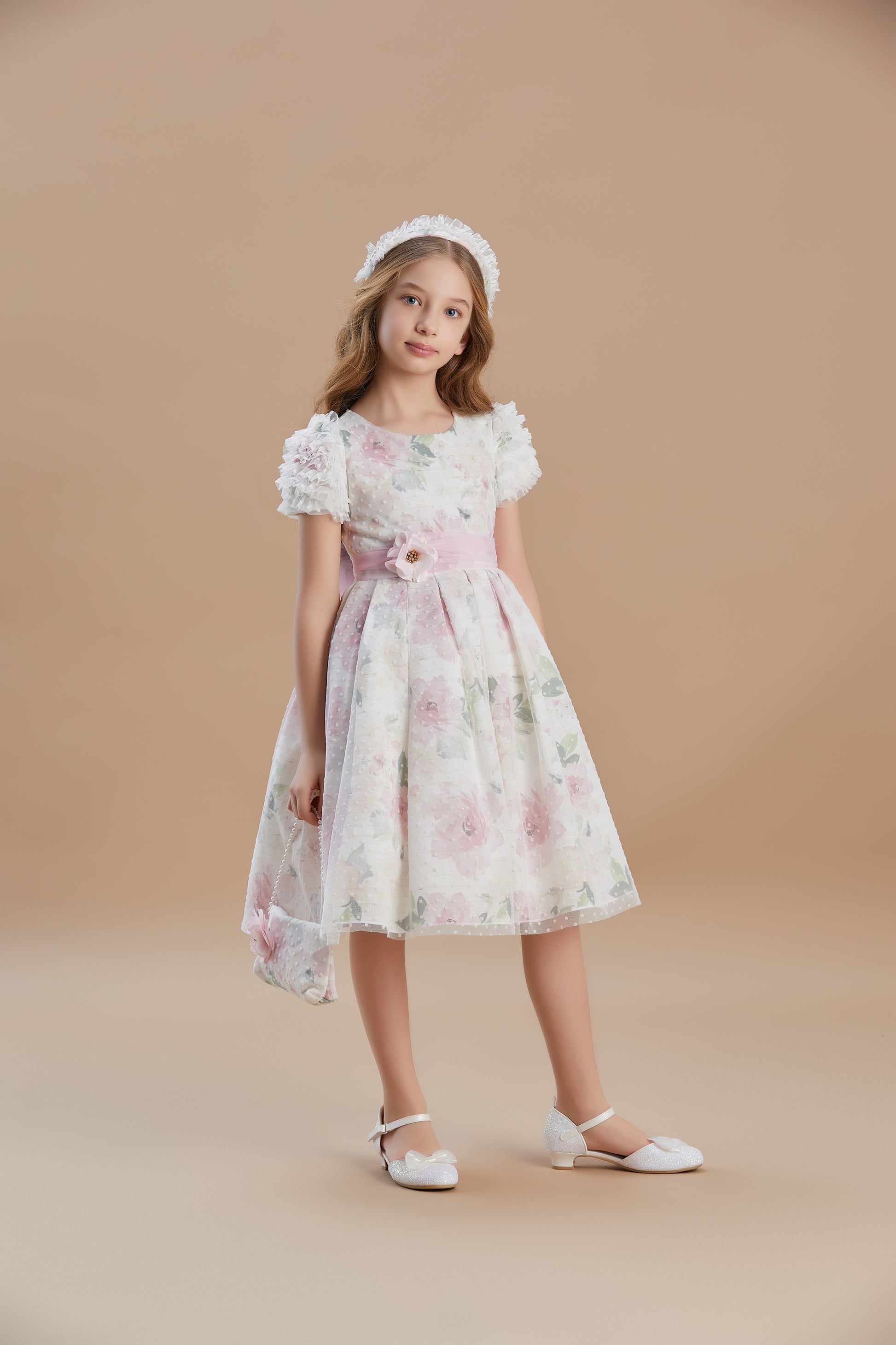 فستان خاص للمناسبات للفتيات بتصميم فلّوك مزخرف بالورود من 6 إلى 10 سنوات