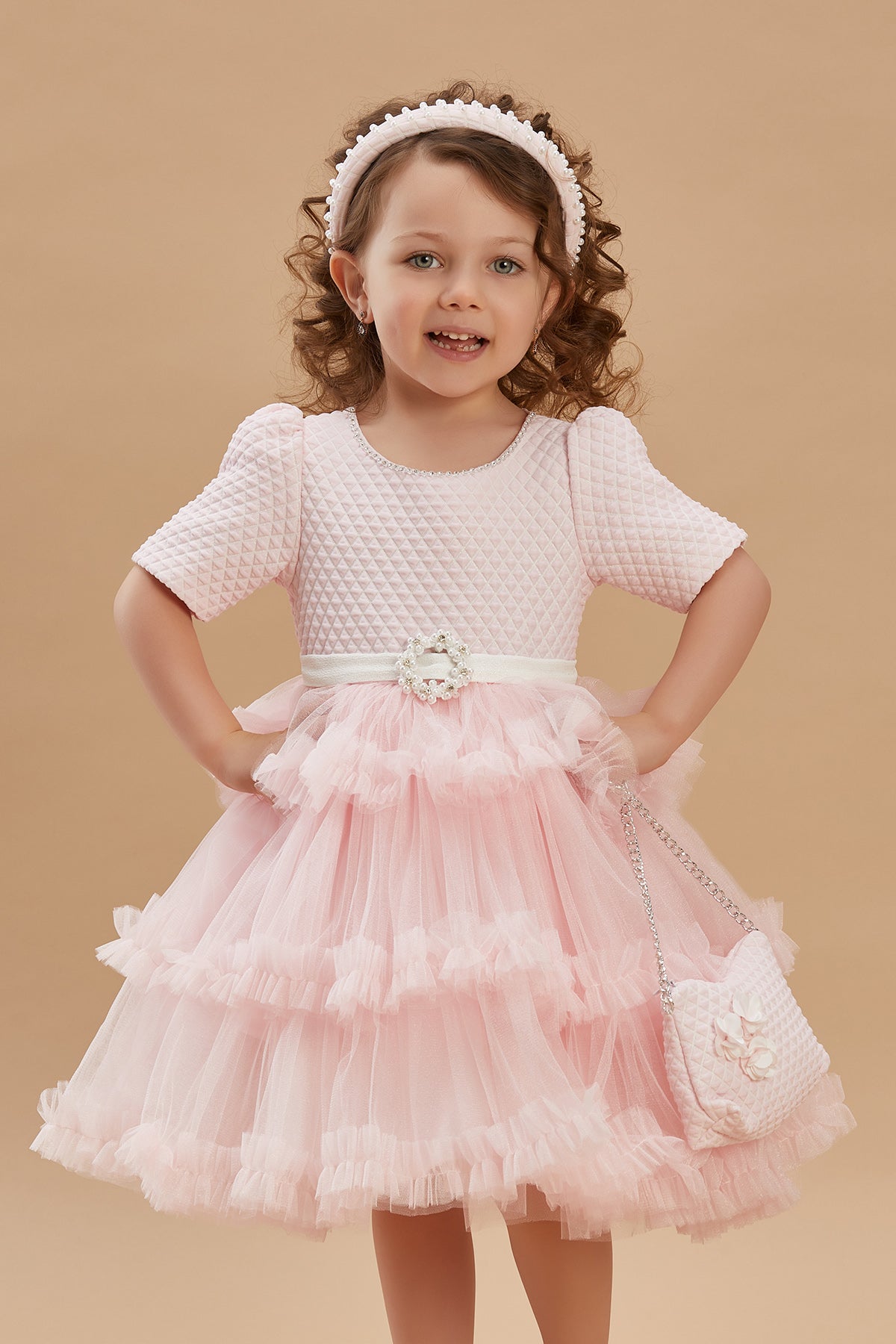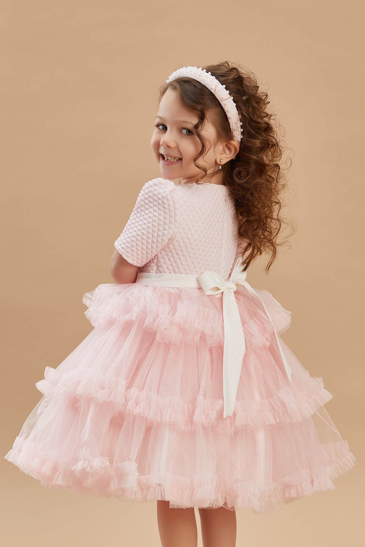 فستان للفتيات مع تفاصيل حزام من 2 إلى 6 سنوات
